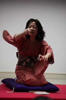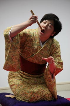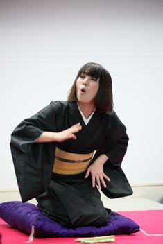 三番手、「射心」さん、創作落語「花嫁御寮」(桂三枝作)を、表情豊か