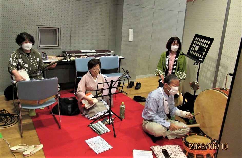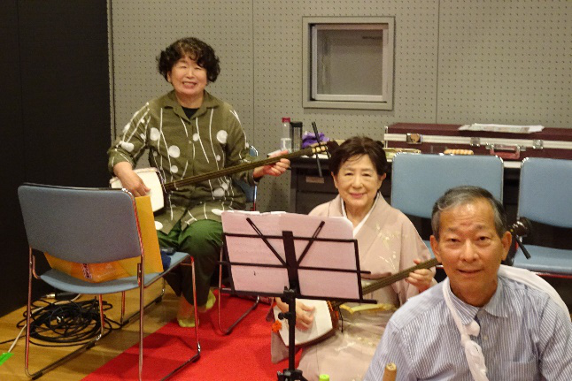 大活躍の社中の皆さん! 三味線:真ん紀・玉美さん 太鼓:文々さん