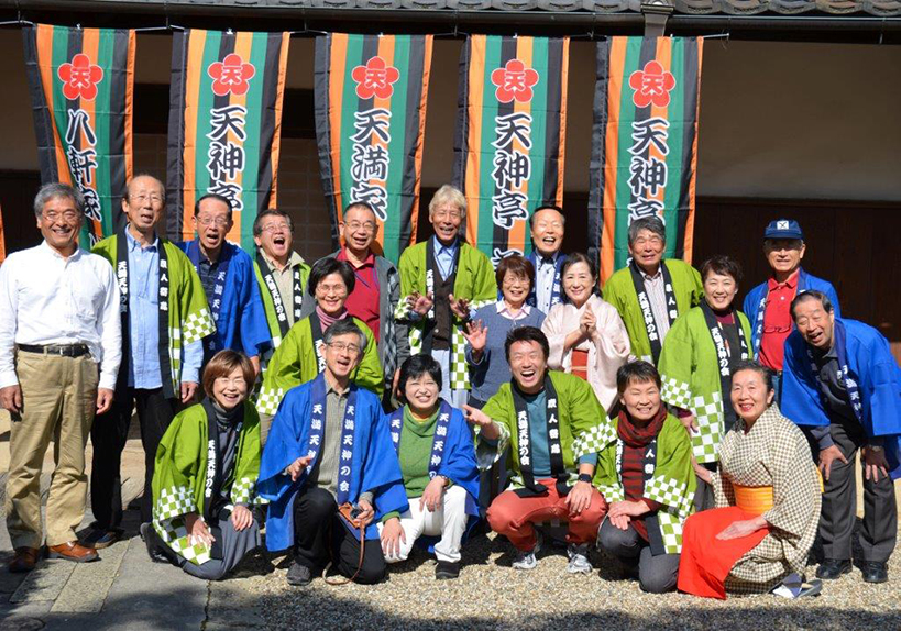 実行委員長の天神亭酔千さんを先頭に会場の設営、道案内に会の幟、