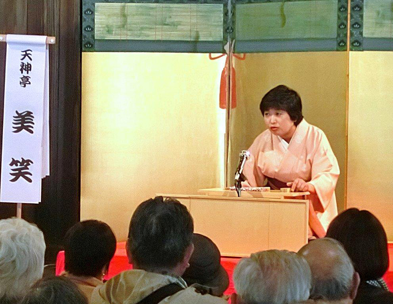 出囃子に乗り1番手は天満家真念さん、繁昌亭の演目『金明竹』での高座です。