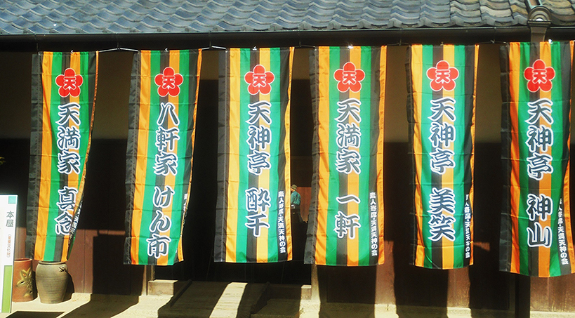 出演者の幟を会所内