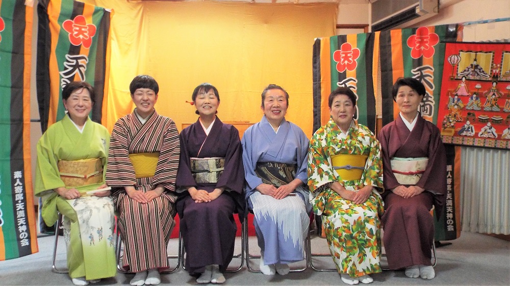 演者のきれい処6名とお茶子の男衆は飄々が務め、天満天神社中が