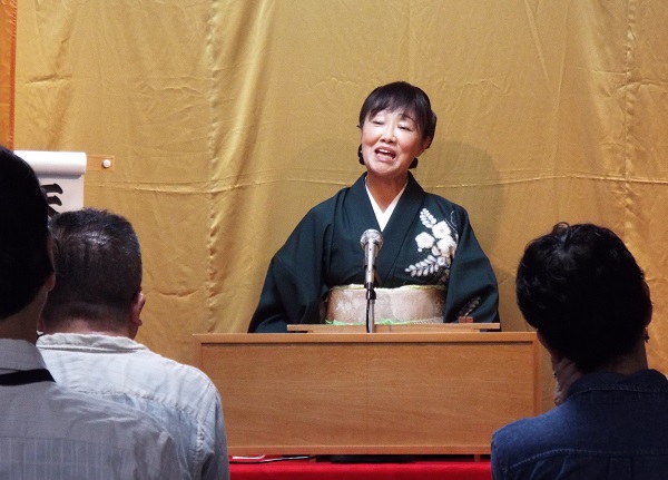 小柄で物静かな女性が登場。しかし話し始めると、澄んだよく通る声。明瞭な発音で聞きやすい。
