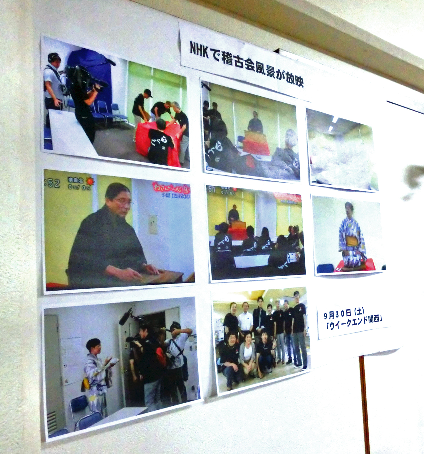 NHK「ウイークエンド関西」の収録風景の写真展示、朝ドラの「わろてんか」のポスターも掲示。