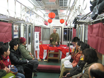 電車で落語を数年続けて行っているのは、