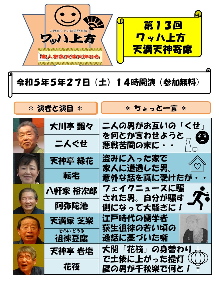 ワッハ上方で第13回『ワッハ上方天満神寄席』を開催し、